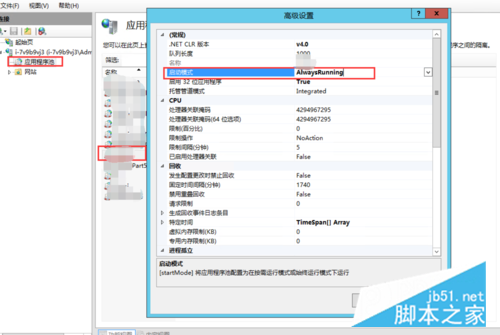 (1)、启用应用程序池(AlwaysRunning):保证应用程序池在第一次创建或者被回收后,能自动再次重启运行。