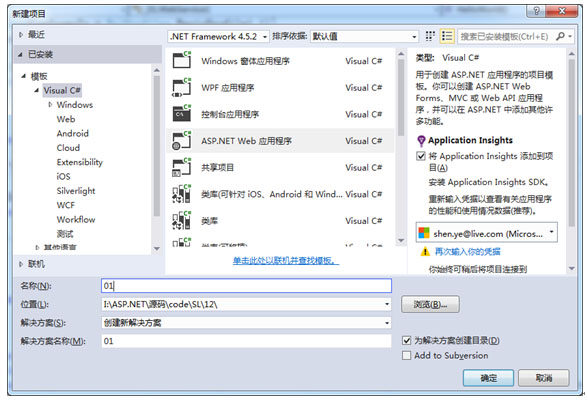 图12.1 新建ASP.NET Web应用程序