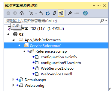 (4)引用添加完成之后,将在“解决方案资源管理器”中添加一个名为App_WebReferences的目录,在该目录中将显示命名空间为ServiceReference1的服务,如图12.8所示。