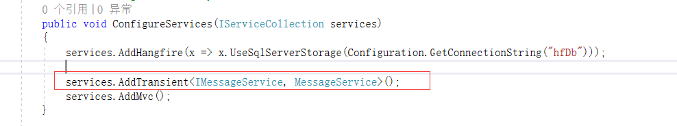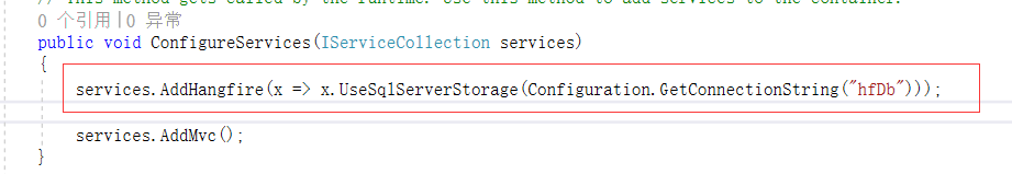hangfire的任务需要数据库持久化,我们在Startup类中修改ConfigureServices