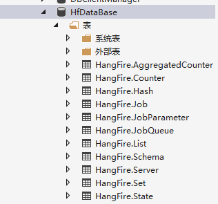 现在我们运行一下项目,可以看到,数据库里自动生成了很多表,这些表就是用来持久化任务的