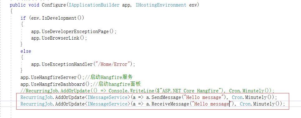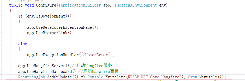 然后在Configure方法中启用hangfire中间件
