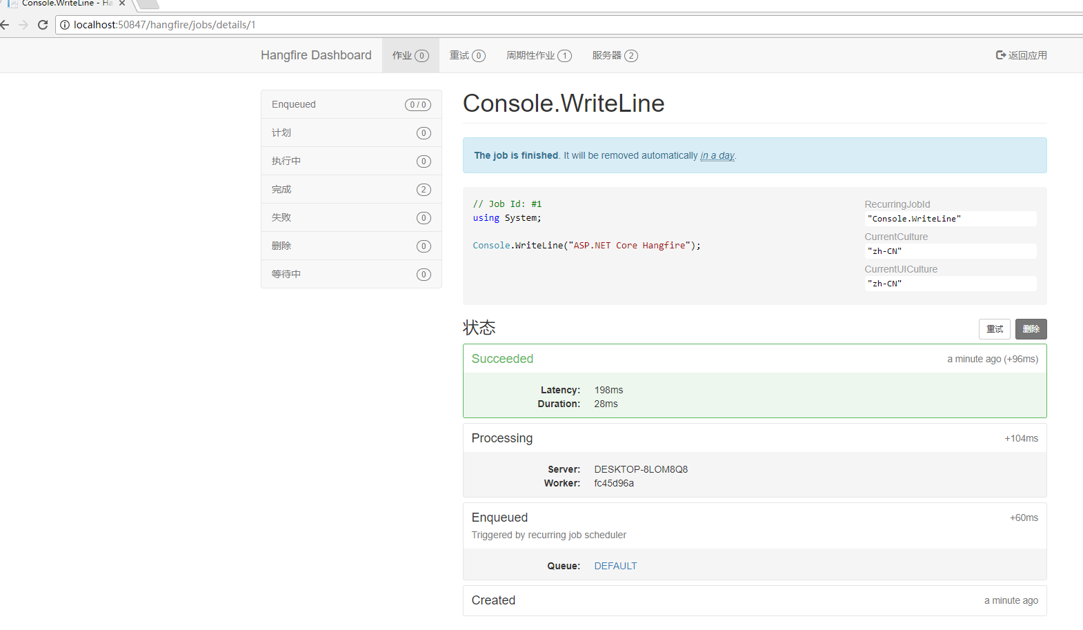 以上只是hangfire在asp.net core中的简单使用。