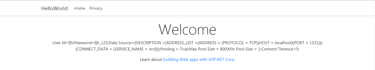 到这里为止,我们可以调用静态类UtilConfig中的静态只读字段OracleConnectionString愉快的使用.Net Core Web应用程序的配置信息。