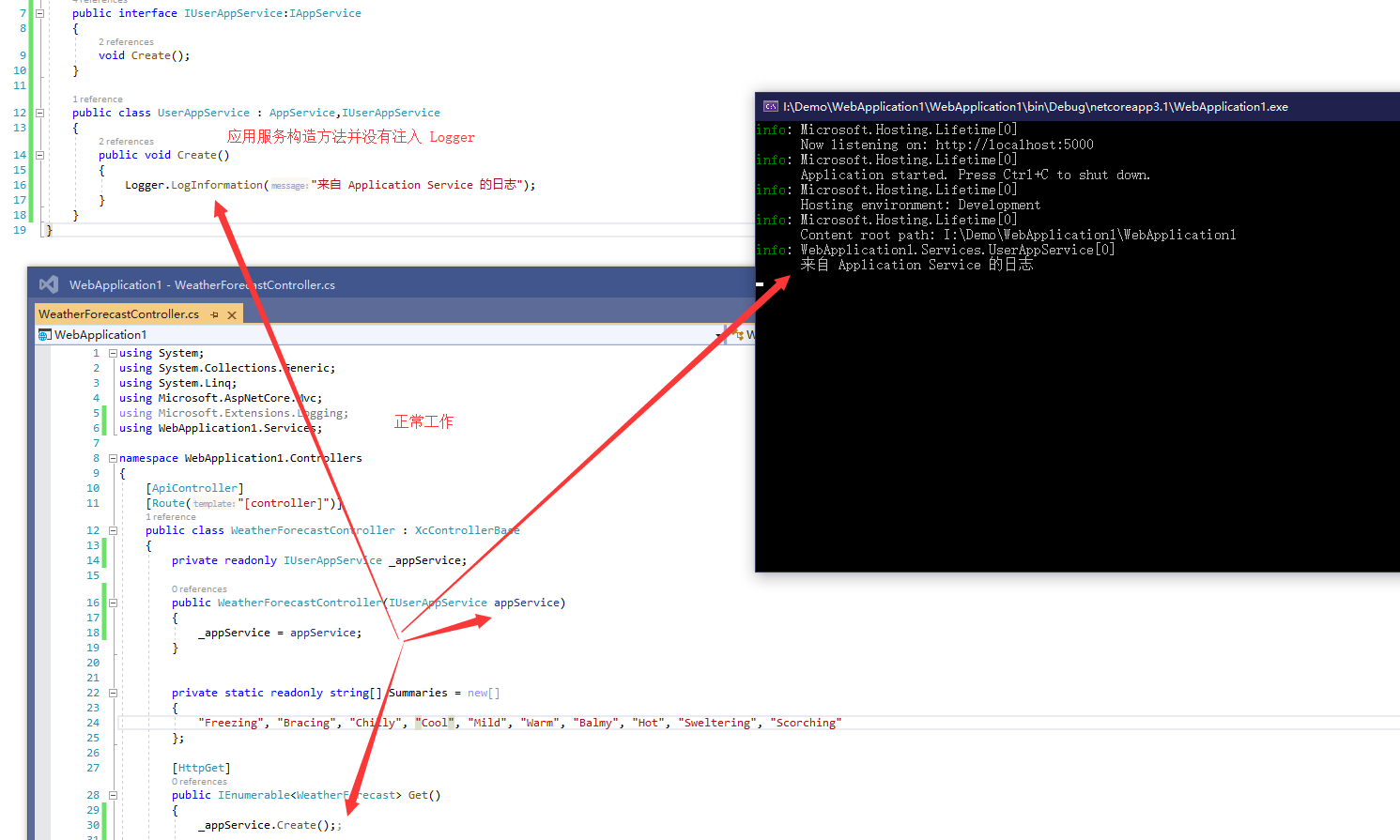 Logger.LogInformation("来自 Application Service 的日志");