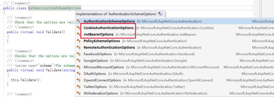 那么我们在哪里指定我们的Scheme类似呢?我们先返回到ConfigureService的AddJwtBearer,使用过的朋友们肯定知道,这里获取的Scheme是我们在ConfigureService通过Addxxx scheme指定的Scheme类型。这里我们是使用JWT的