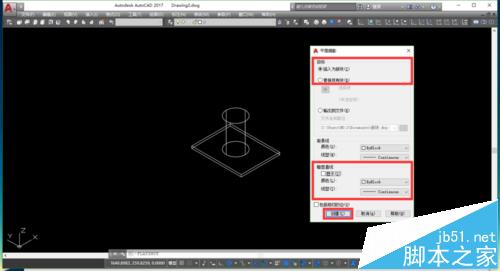 3、这个时候,命令行输入“FLATSHOT”-“空格”。会弹出“平面摄影”对话框,选中“插入为新块”。而“暗显直线”是指:三维图的隐藏线,如果需要显示隐藏线的,可以勾选。不需要的话就取消勾选。点击“创建”。