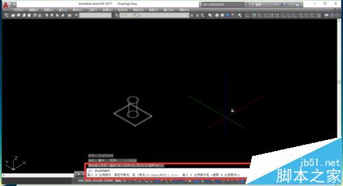 4、命令行会提示:“指定插入点”,这个时候选择一点;命令行又会提示:“指定X比例因子”,意思是让你指定比例,默认是1。一般直接“空格”,选默认。同样还有Y比例因子,也默认。还会“指定旋转角度”,默认为0,不旋转。