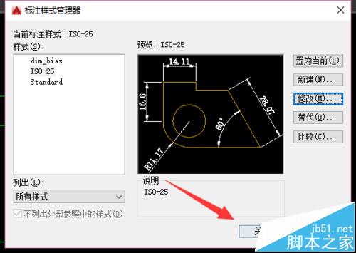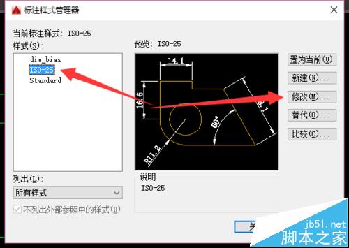 3、点击你所使用的标注样式,再点击右侧的修改。