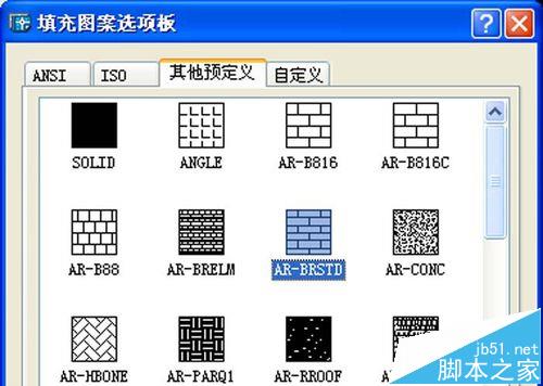 3、在弹出的【填充图案选项板】窗口上选取图案,有很多预设的,我这里想填充围墙,那就选取如下图案。