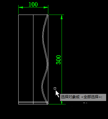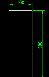 3、画一个长100mm,高300mm的矩形。REV(矩形)——空格——用鼠标左键点一个,松开左键再拖一下鼠标——输入 100,300——矩形画好。再沿上下边的中点画一条直线。L(直线)——空格——用鼠标左键点一下上边的中心,再点一下下边的中点——空格——直线画好