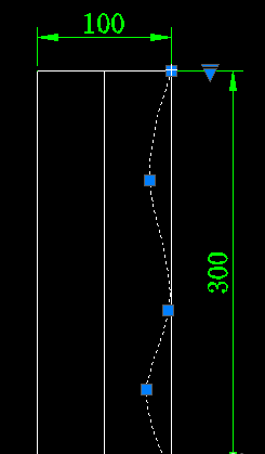 4、如图画一条样条曲线。SPL(样条曲线)——空格——在矩形右上顶点点击第一点,然后如图弯曲点3点,最后点矩形右下顶点——空格。若画的不好,可以再调整样条曲线的各个点