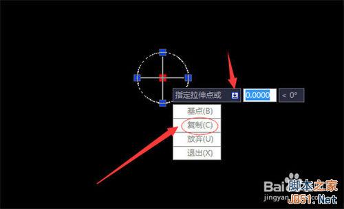 单击圆心,出现一个菜单,点击键盘上方向键盘的下拉箭头。