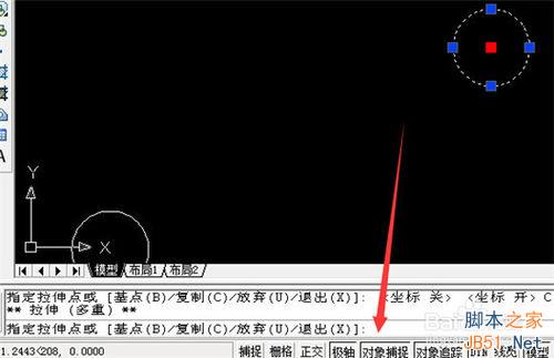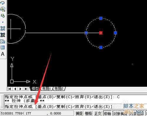 可以看到命令窗口有“指定拉伸点”字样,等下直接复制坐标进来就行了。