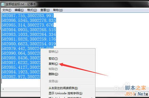打开事先准备好的点坐标,ctrl+A全选,复制。