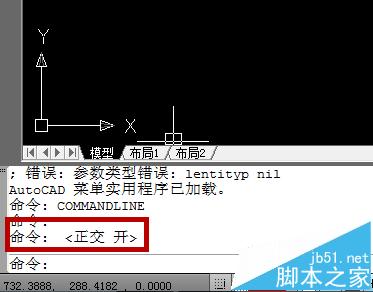 1、首先打开cad,因为画的是直线箭头,这里小编建议大家先把“正交”打开,如图所示,点击下方的直角符号,命令栏会提示<正交 开>