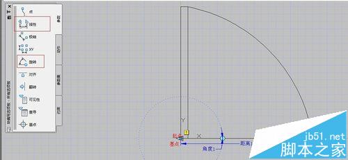 4、在“块编写选项板”中的“参数”选项中选择“线性”和“旋转”项,根据命令行提示,创建一个线性参数和旋转参数,如图所示。