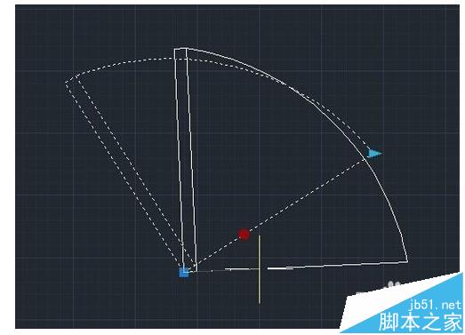 7、在“块编辑器”窗口左上方单击“保存块定义”按钮,然后退出块编辑器,这时选中创建的动态门图块将显示出几个特征点对象。