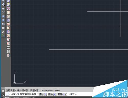 4、“选择偏移的对象”,我们选择绘制好的第一条直线,提示“指定要偏移那一侧上的点”,我们在直线的下侧点击,完成平行线的绘制