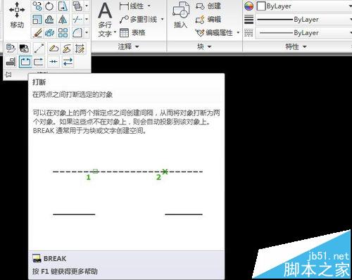 在用AutoCAD2010画的图中,我们有时候需要运用到打断这个命令,打断是指将对象在某点处打断,即一分为二,或在两点之间打断,即删除位于两点之间的那部分对象。
