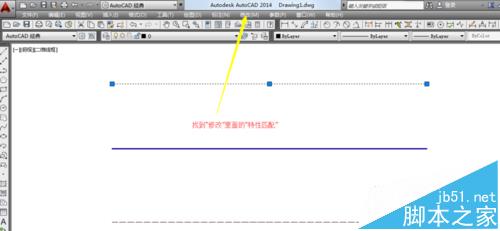 “特性匹配”命令可以在工具栏中直接点击,如果工具栏中没有的话可以到菜单栏中的“修改”菜单中找到。