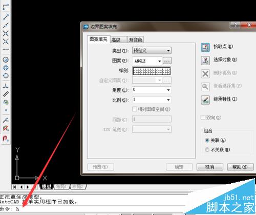 2、我们在命令输入栏中输入H,进入填充