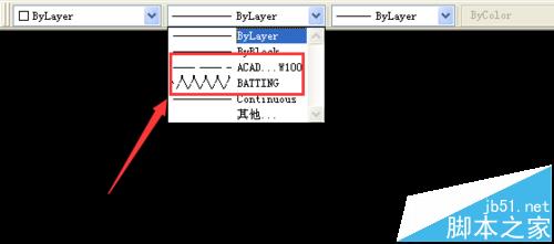 8、在线型管理器里点击确定,我们的线型就加载完成了,然在线型选择窗口里点击后就可以找到我们加载的线型,如图所示: