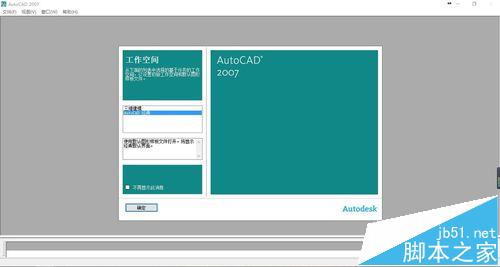 1、首先我们打开AutoCAD2007软件,这时会自动弹出一个页面,我们选择“AutoCAD经典”,点击确认,然后软件就会进入AutoCAD的经典界面。