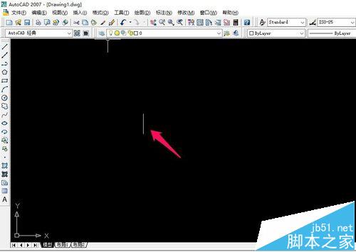 2、进入界面后,我们选择左边工具栏的第一个,也就是“直线”工具。然后使用“直线”工具画一条适当长度的垂直的线段。