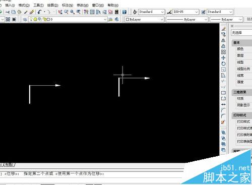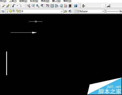 6、接下来就是把箭头和短粗线拼到一起。我们选择“修改”→“移动”命令,选中箭头(或者短粗线也行),并将它们拼在一起,然后再对长度做适当的缩放。这时候我们就成功画出了一个剖切符号。