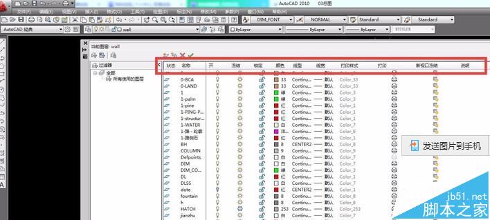 2、图层管理工具点开下拉菜单之后会显示图纸内的所有图层,并标记图纸内所有图层的使用状态。使用快捷键“LA”可以打开“图层管理器”,立面更详细地显示每个图层的状态。为方便介绍,下面随意打开一张图纸。