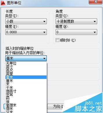 1、设定单位:cad的单位一般为毫米,初次使用时可以调一下看是不是单位设定对了,如果不是毫米制图到后来也是很麻烦的。按UN呼出单位选项,选为毫米。点击确定。