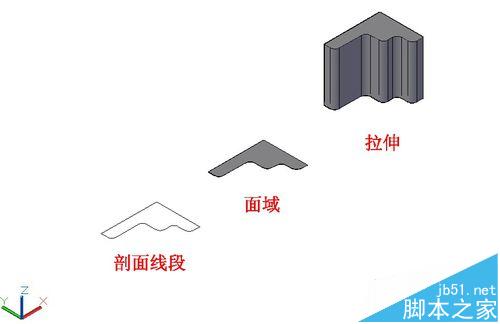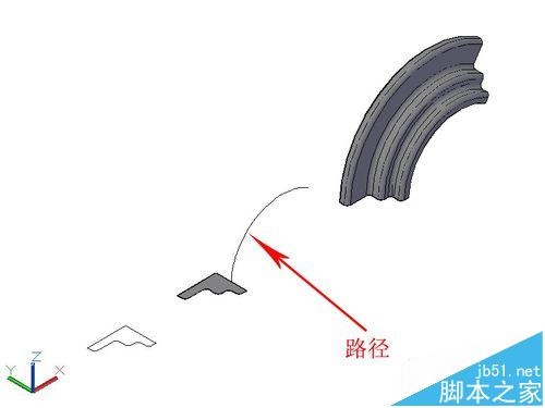 2、不仅可以直线拉伸,还可以画出路径,沿路径拉伸。操作方法:命令栏输入ext--选择剖面--空格--输入P(即沿路径拉伸)--选择路径线段--完成