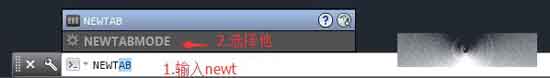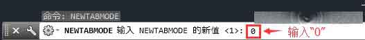 3、进入编辑界面后,在命令行里输入“newt”,弹出“NEWTABMODE”,鼠标点它,再输入“0”,按回车退出