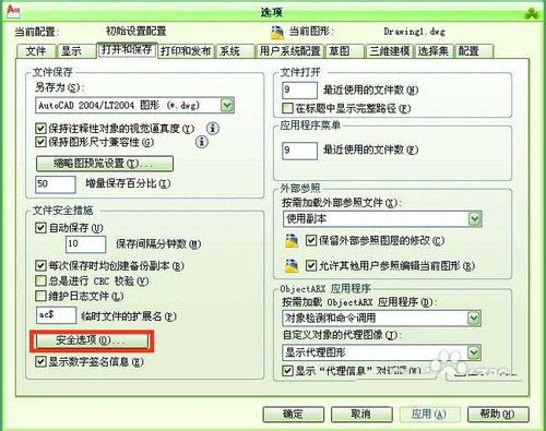 4、进入打开和保存设置以后,用鼠标点击下面的安全选项按钮