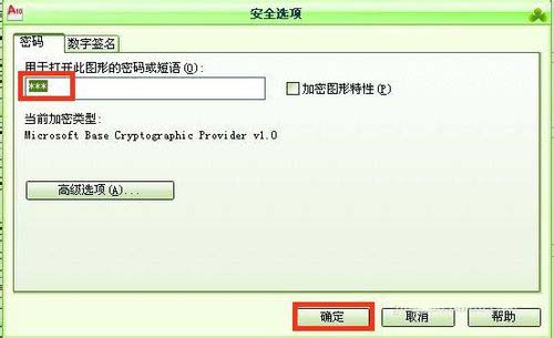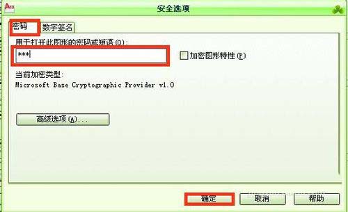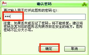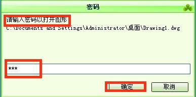 7、设置好以后再打开图形的时候,就会出现密码窗口,可以输入密码后点击确定打开图形