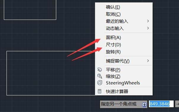 4、面积/尺寸法:输入第一点后,右键选择面积或尺寸