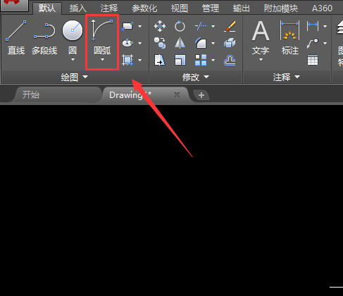 7、使用圆弧命令,在绘图区里绘制三个圆弧,如图所示: