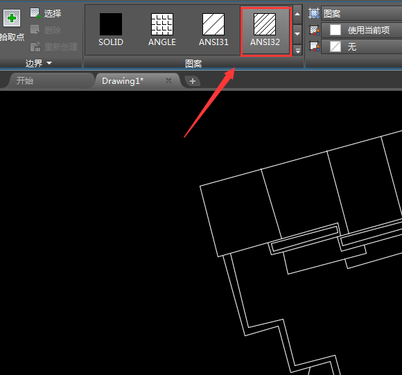 10、再在圆弧内点击鼠标左键填充上我们选择的图案样式,如图所示:
