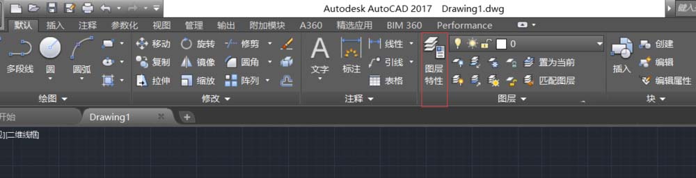 1、打开AutoCAD,在上方工具栏中点击图形特性。