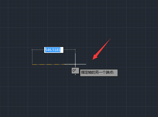 5、使用鼠标左键在绘图区里点击鼠标鼠标左键,然后移动鼠标左键指定轴的另一个端点,如图所示:
