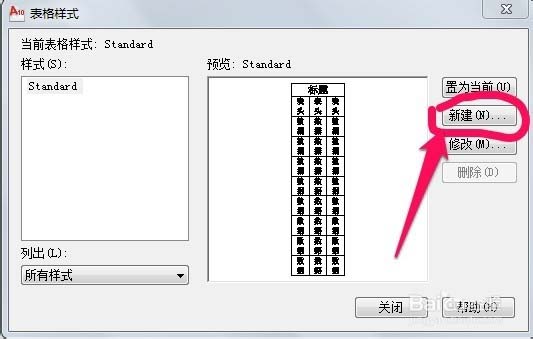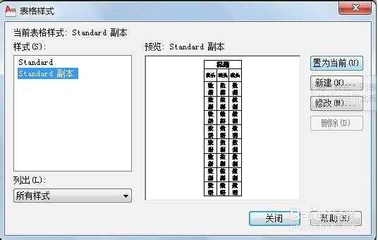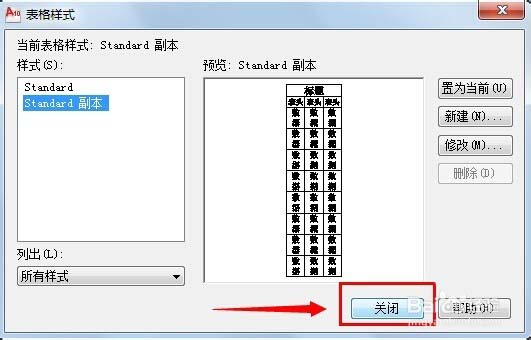 3、单击【确定】按钮,返回【表格样式】对话框,在【样式】列表框中选择创建的新样式,单击【置为当前】按钮。