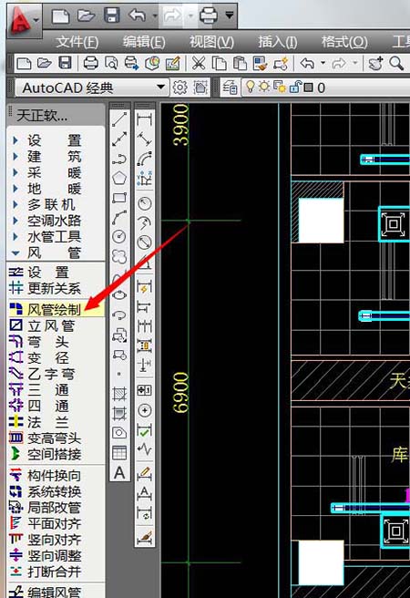 2、打开左侧菜单栏中的风管绘制菜单