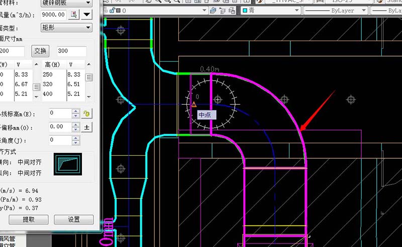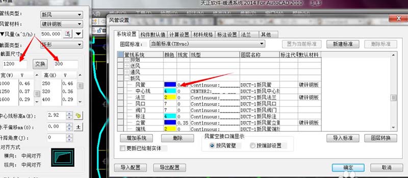 3、在风管绘制菜单栏里输入风管尺寸,建议更改一下与原图纸不同的风管颜色
