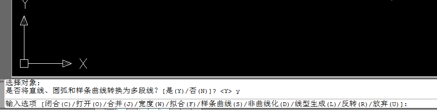3、输入Y 回车,转换直线曲线为多段线。输入J 回车,合并曲线。现在是一条完整的曲线了。
