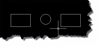 3、下面我们举例说明一下,怎么操作这个命令。如图所示,我们想以圆的上切点为基点,移到两个矩形的中心。
