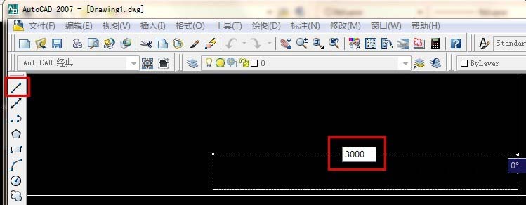 4、点击下直线按钮在空白处随便点一下,然后往四个方向随便哪个方向移动鼠标,数值是可以直接输入的(以毫米为单位),输入好数值按“回车键”就可以了。