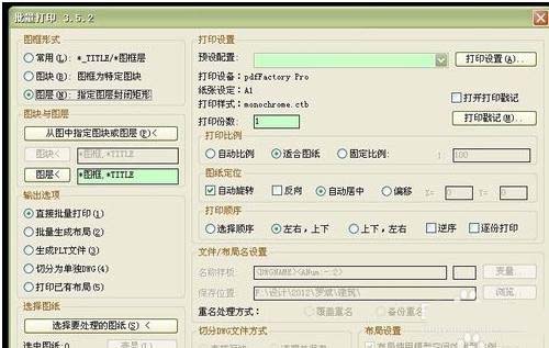 7、设置打印比例,此时可以看到设置好的打印机配置,下一步就是选择图纸打印了。我们绘图时图框一般是同一个图层或者是同一个块,可以在图框形式里选择,下面点击“从图中指定图块或图层”,选择要图框。其余设置默认即可。