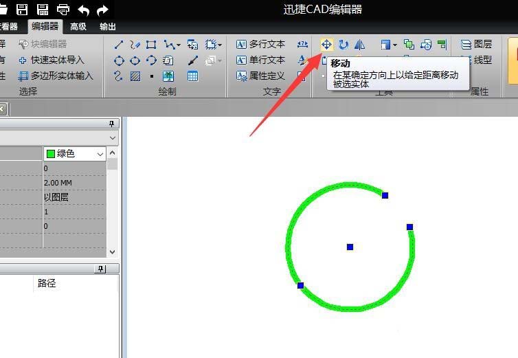 6、当然,我们也可以通过相比位移实现对特定实体的移动操作。选中实体对象, 在“工具”栏目中点击“移动”工具。