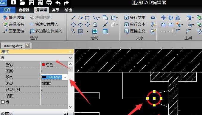 6、选中DXF的图形的情况下,就可以在其“属性”窗口中对“线条颜色”和“线条宽度”进行设置了。